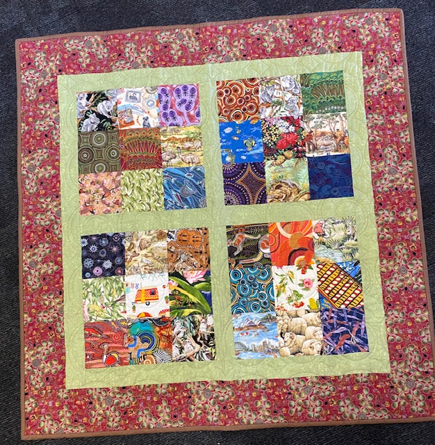 Description: 42 x 5 inch squares featuring a smorgasbord of Australian flora, fauna and indigenous prints, similar to the ones illustrated in the quilt featured. Category: Australian and Bundles. Cost: $25 In Stock: 2